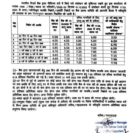जमाओं पर ब्याज दरें